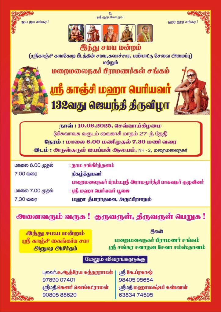 அருமைச்சகோதரர் முனைவர்.கலைராம.வெங்கடேசன் தம்பதியர் ஸ்ரீகாஞ்சி ஆசார்ய ஸ்வாமிகளின் பூரண அருளாசியுடன் சீரோடும் சிறப்போடும் பல்லாண்டு வாழ்வாங்கு வாழ இந்துசமயமன்றம் சார்பில் மணிவிழா நல்வாழ்த்துக்கள்!