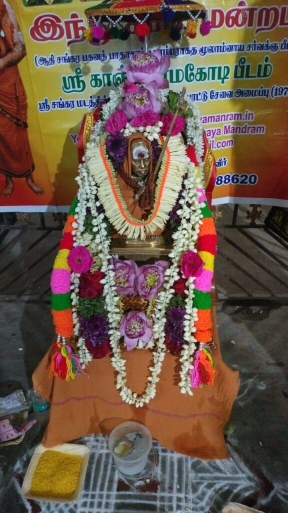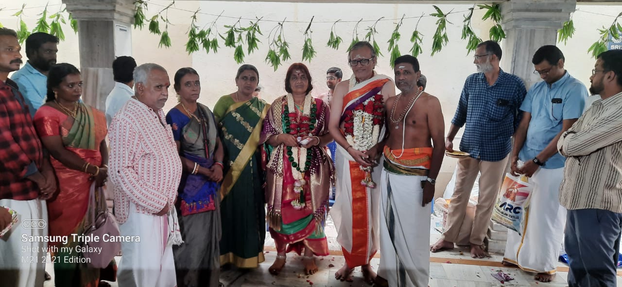 காஞ்சி ஸ்ரீமடத்தின் ஏனாத்தூர் சங்கரா கல்லூரி முதல்வரும், இந்துசமயமன்ற அமைப்பாளரும் என் அன்பு சகோதரருமான முனைவர் கலைராம.வெங்கடேசன் – சௌ.கிருஷ்ணவேணி தம்பதியரின் மணிவிழா இன்று காஞ்சி ஸ்ரீசங்கர மடத்தில் வேதோக்தமாக சிறப்பாக நடந்தது. இந்துசமயமன்றம் சார்பில் வாழ்த்துக்களை மாநில அமைப்பாளர் புலவர்.க.ஆத்ரேய சுந்தரராமன் தெரிவித்ததோடு மணிவிழா வாழ்த்துக்கவிதையையும் அனுப்பினார்.